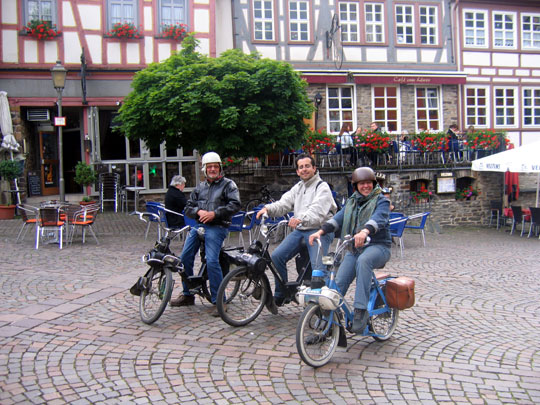 "Un Solex allemand avec un plateau sur le porte-bagage"