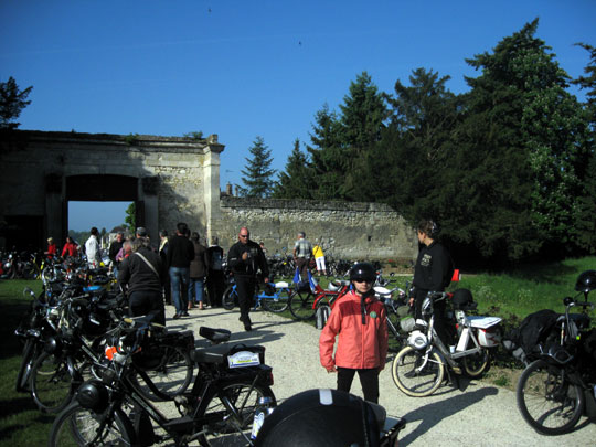 "Les solex devant l'entrée de la porte du Château du Plessis Brion"